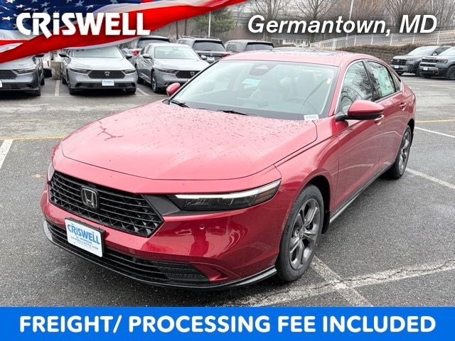 Learn About This 2026 Radiant Red Metallic Honda EX-L Hybrid Accord Sedan for Sale North of D.C., VIN = 1HGCY2F69TA013603