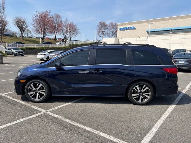 Learn About This Used 2023 Obsidian Blue Pearl Honda Touring Odyssey for Sale North of D.C., VIN = 5FNRL6H81PB049229
